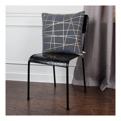 Exquisite metallic gold lines dart across the dark gray background of this Rizzy Home Rachel Kate Dark Square Abstract Throw Pillow, forming a dimensional view as they cross paths. This pillow will make a great foundational piece in an arrangement or the star of the show when displayed individually in your décor. This piece has a coordinating cotton back with a zipper allowing easy access.