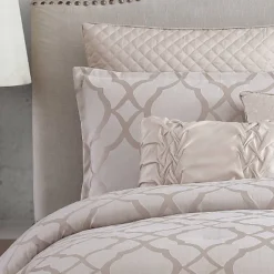 - Set includes one comforter, one coordinating bed skirt, two coordinating shams and three decorative pillows