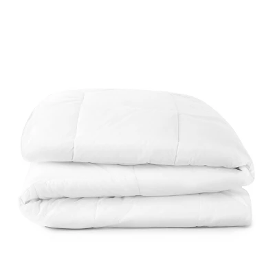 Used in countless hotels and fine resorts, this down alternative duvet insert/comforter is beloved for its down-like feeling and comfort. This soft comforter comes in a great year-round option, perfect for most sleepers. This comforter is sold to many hotels – due to high demand there may be periods when it is sold out in select sizes as hotels replenish rooms.100% 230 Thread Count Crisp Cotton Cambric Weave FabricEasy Care Down Alternative Polyester FillQuilted Sewn-Thru Box construction with frameDoes have Duvet Tabs (Perfect for using with a duvet cover)Interior Boxes Measure 13 inches with 5 inch Outer BorderDouble Needle Edge sewn with matching pipingEasy care machine wash & dryMinimal Waste packaging (Made for Hotels)Sold IndividuallyMade in China Size & Weights:Queen – 90 x 90 Inches – 46 oz. fillKing – 104 x 90 Inches – 52 oz. fill*Cambric cotton is the best fabric to use for down and down alternative bedding due to it’s tightly woven structure. It has a crisp noise effect to it as a result of the weave and finish. Some customers find the noise to be distracting. Over time daily use will soften the fabric.