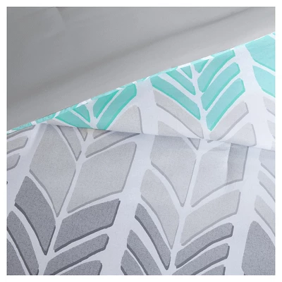 Create a colorblocked look in your bedroom with the Amanda Comforter Set. This geometric chevron design uses light grey, taupe grey and aqua for a unique update to this pattern. Two decorative pillows features teal as well to pull this whole look together. This bedding set is also OEKO-TEX certified, meaning it does not contain any harmful substances or chemicals to ensure quality comfort and wellness.