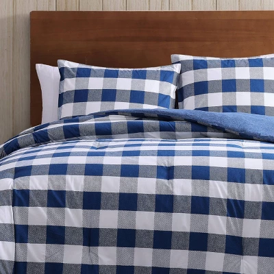 Bison Plaid 100% Cotton Comforter Set Navy – Wrangler