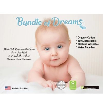 The Bundle of Dreams Zipper Mattress cover is made of Organic Cotton and is water repellent up to 12 hours. Unlike waterproof mattress covers, Bundle Of Dreams is 100% breathable. It will fully encase a crib mattress and can be machine washed and dried.