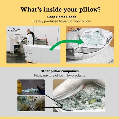- IS YOUR PILLOW GREEN GUARD GOLD CERTIFIED? – Our Coop Home Goods Eden Pillows undergo strict, third-party lab testing and are CertiPUR-US and GREENGUARD Gold certified to ensure safety and quality. No toxic or harmful chemicals here! IT`S 100% SAFE FOR YOU AND YOUR LOVED ONES. Vegan & Cruelty Free – no animals were harmed in the making of this awesome pillow.