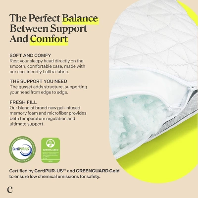 - LOOK NO FURTHER, HOT SLEEPERS – Your search for the perfect adjustable pillow has come to an end. The Eden features our soft, gel-infused memory foam & microfiber fill blend for a cooler sleep experience and a gusseted design for edge-to-edge support.