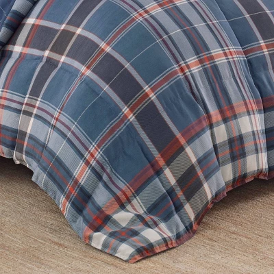 Make your bedroom a perfect escape from the stresses of modern life with this ultra soft, incredibly comfortable microsuede comforter set from Eddie bauer. The microfiber fabric is brushed to create an exceptionally soft, plush feel and the hypoallergenic down alternative fill insures a lightweignt loft that retains its shape, offering luxurious year round comfort. A pair of classic plaids in a rich palette of indigo and navy blue wth barn red and white accents combine to create this handsome tailored ensemble with timeless appeal. Twin Comforter Set includes: One twin comforter (86″L x 63″W)) and one standard sham (21″L x 27″W)), Full/Queen Comforter Set includes: One full/queen Comforter (88″L x 88″W)) and two standard shams (21″L x 27″W)), King Comforter Set includes: One king comforter (88″L x 104″W)) and two king shams (21″L x 37″W))