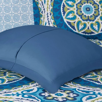 The Madison Park Nepal Complete Comforter and Cotton Sheet Set provides a fresh globally inspired look for your bedroom. An intricate medallion pattern repeats across the top of bed in brilliant shades of complementary colors to play up the oversized print. An oblong pillow uses decorative embroidery and piecing to create texture on the top of bed. Also included is a complete cotton sheet set that features a coordinating medallion print to complete the look. Bringing the best in health and wellness, this bedding set also features an anti-microbial treatment that provides built-in freshness protection, reducing the growth of odor causing bacteria and keeps fabric lasting longer. This bedding set is also OEKO-TEX certified, meaning it does not contain any harmful substances or chemicals, ensuring quality comfort and wellness.