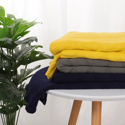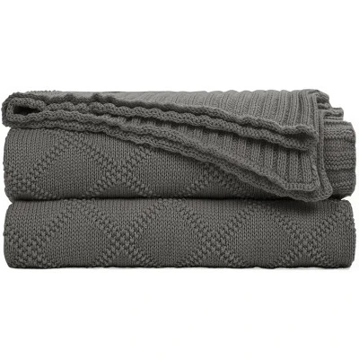 PiccoCasa 100% Cotton Knit Throw Blanket Soft Lightweight Decorative Knitted Blankets