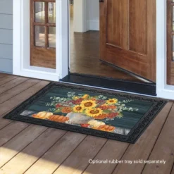 Sunflowers And Hydrangeas Fall Doormat Floral Pumpkins 30″ X 18″ Briarwood Lane