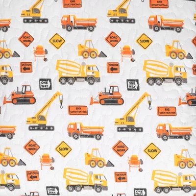 Cars, trucks, buses, planes and helicopters whiz by on this ultra soft Quilt set. Assorted vehicles are printed in bright, eye-catching colors. Oversized fit gives you the perfect amount of overhang! Add our matching sheet sets to complete the look. Oversized Sham features envelope closure Quilt reverses to Solid Orange Filling 60% Cotton, 40% Polyester Covering 100% Polyester Full/Queen includes: 1 Quilt and 2 Pillow Shams Machine wash cold, do not bleach, do not iron, tumble dry Size: Full/Queen: Comforter 90″L x 90″W, Shams 20″L x 26″W