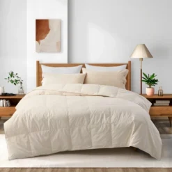 When cooler weather settles in, keep things warm and cozy with the Ultra Weight Down-Blend Comforter from Casaluna™. This ultra-cozy comforter is generously filled with a blend of duck down and polyester for an inviting addition to any bedscape, and the 100% cotton outer has a soft finish for an appealing feel. A box-quilted design helps minimize shifting for even weight and distribution throughout. The ultra-weight construction is the loftiest, most luxurious choice, with a cloud-like silhouette and comforting weight that feels extra cozy on cool nights. Thoughtfully designed, it will keep you resting easy all through the cooler seasons.